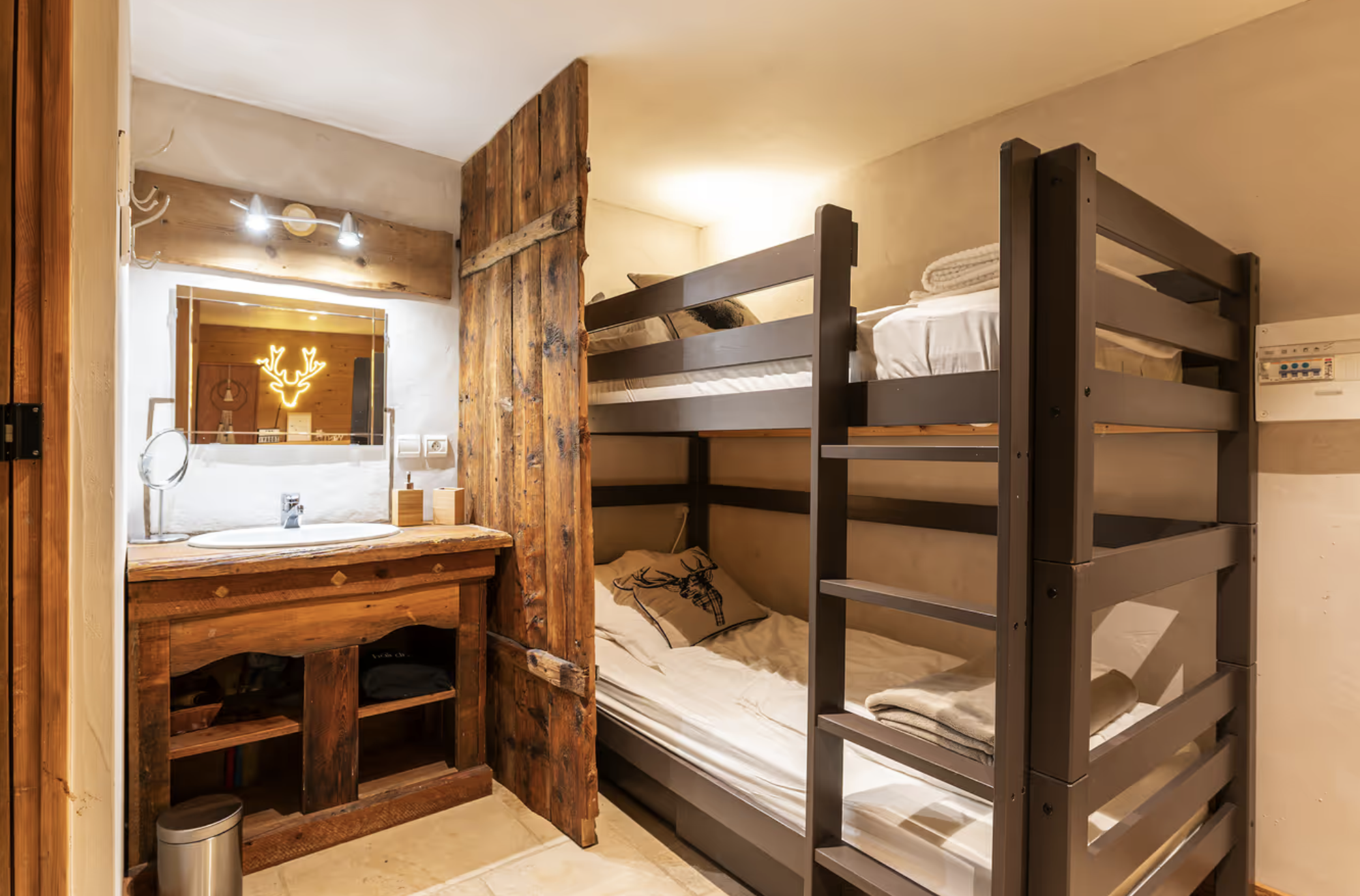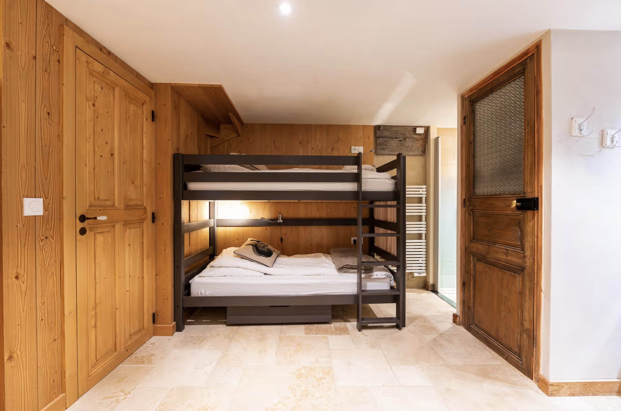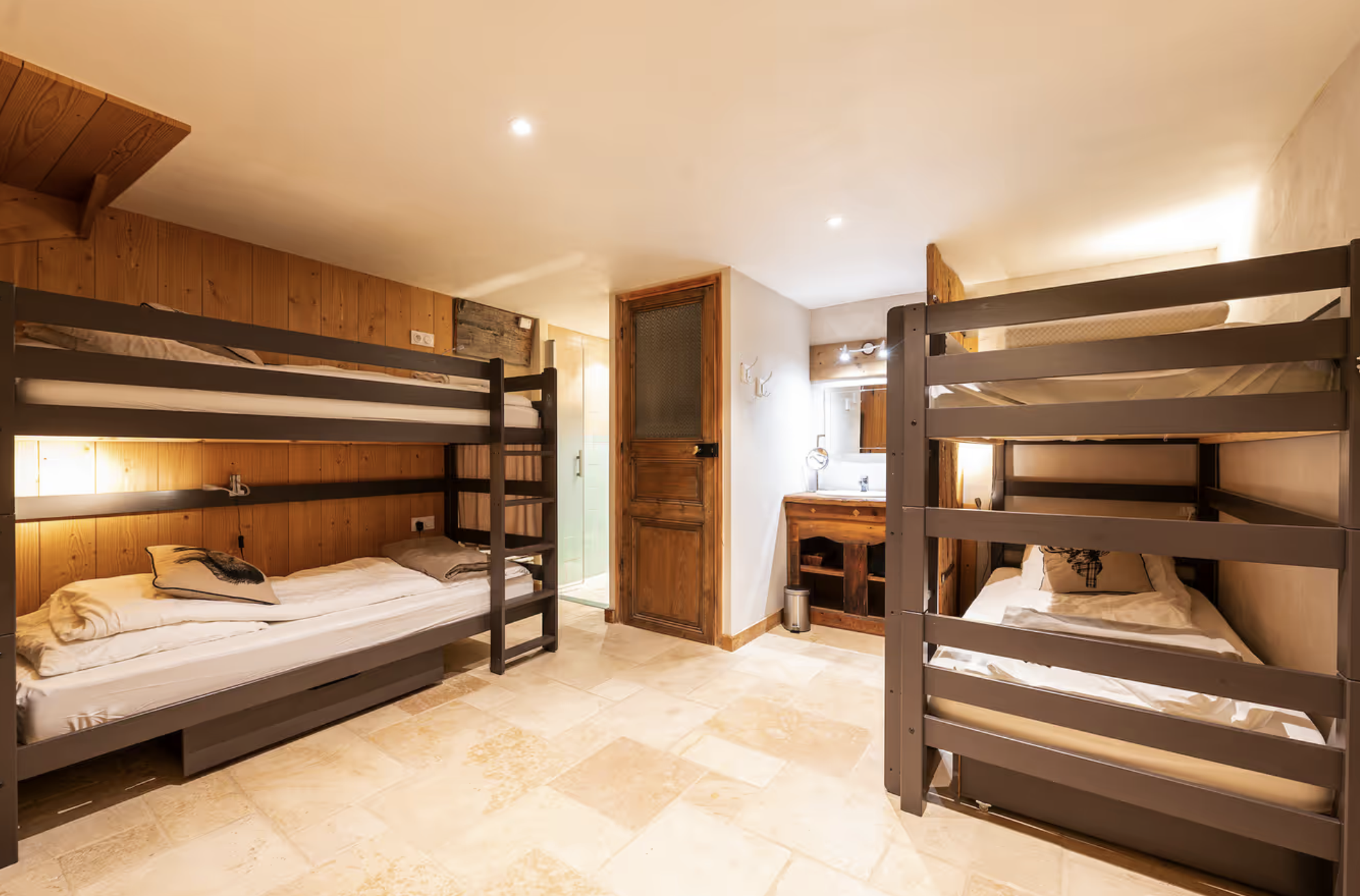 - Chambre 4 : 4 lits superposés en 90 cm + WC + salle d’eau privative